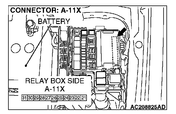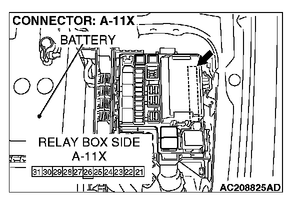 STEP 5. Check the front-ECU connector A-11X for loose, corroded or damaged terminals, or terminals pushed back in the connector.