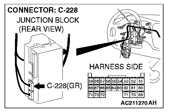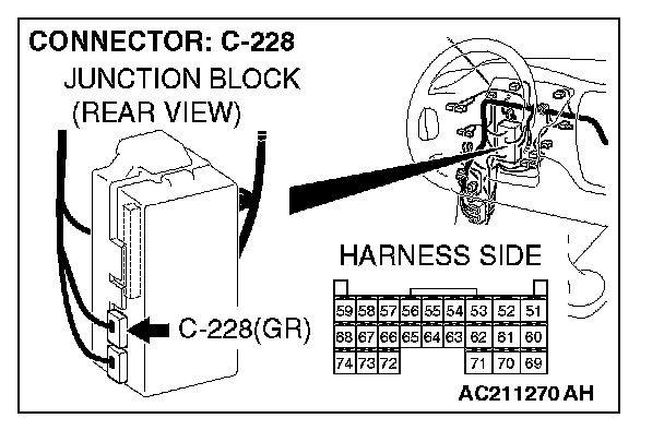 STEP 8. Check the ETACS-ECU connector C-228 for loose, corroded or damaged terminals, or terminals pushed back in the connector.