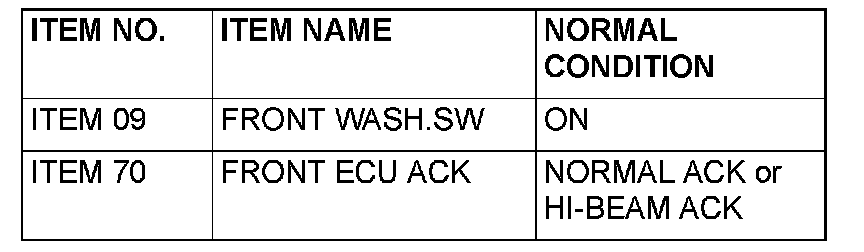 Q: Does scan tool MB991958 display the items "FRONT WASH.SW" and "FRONT ECU ACK" as normal condition?