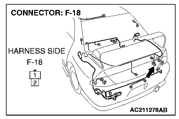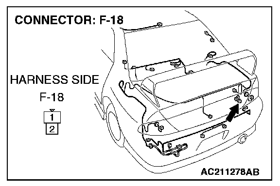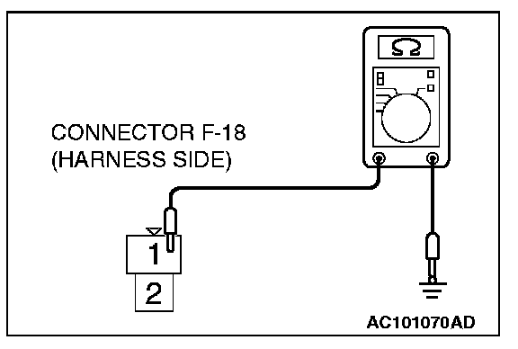 1. Disconnect windshield washer motor connector F-18 and measure the resistance available at the wiring harness side of the connector.