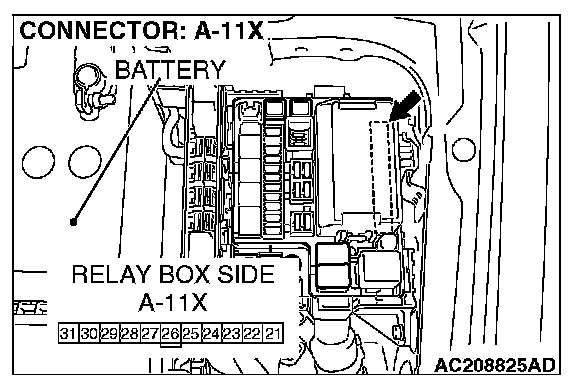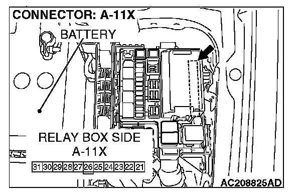 STEP 8. Check front-ECU connector A-11X for loose, corroded or damaged terminals, or terminals pushed back in the connector.