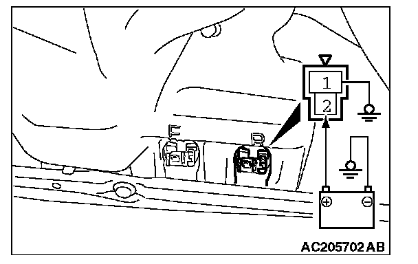 4. When connect the positive battery terminal to rear washer motor connector terminal number 2, washer fluid should gush out.