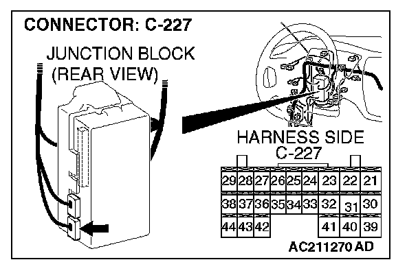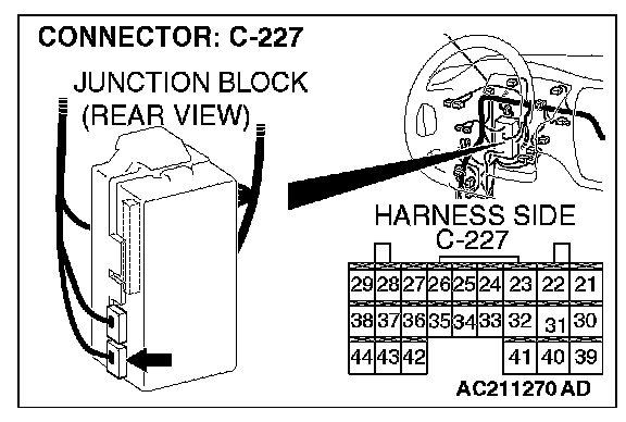 STEP 7. Check ETACS-ECU connector C-227 for loose, corroded or damaged terminals, or terminals pushed back in the connector.