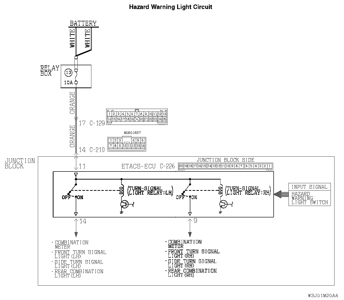 If the ETACS-ECU receives "ON" signal from the hazard warning light switch, the ETACS-ECU turns on the flasher timer (incorporated in the ETACS-ECU), thus causing the turn-signal lights to flash