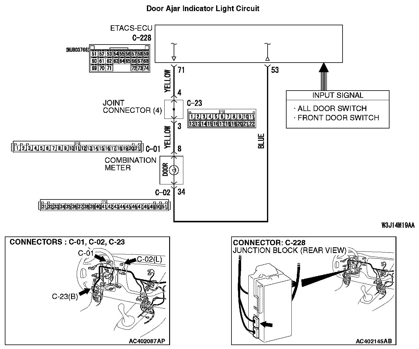 The ETACS-ECU operates the door ajar indicator light according to the following switch signals: