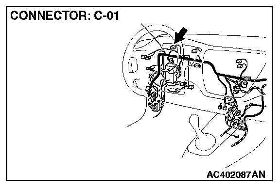 STEP 4. Check combination meter connector C-01 for loose, corroded or damaged terminals, or terminals pushed back in the connector.