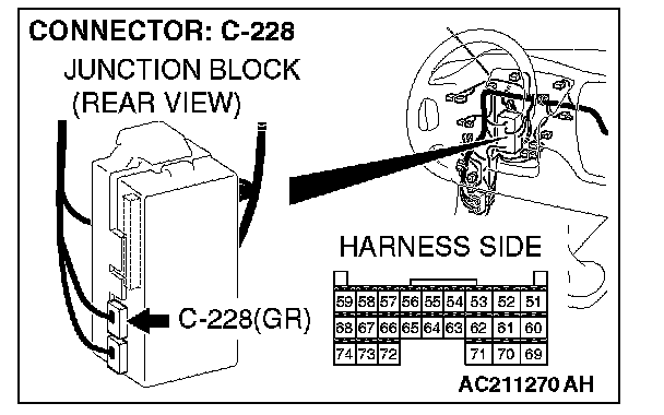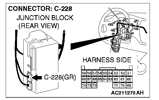 STEP 8. Check ETACS-ECU connector C-228 for loose, corroded or damaged terminals, or terminals pushed back in the connector.