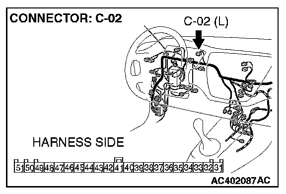 STEP 9. Check the wiring harness between combination meter connector C-02 (terminal 34) and ETACS-ECU connector C-228 (terminal 53).