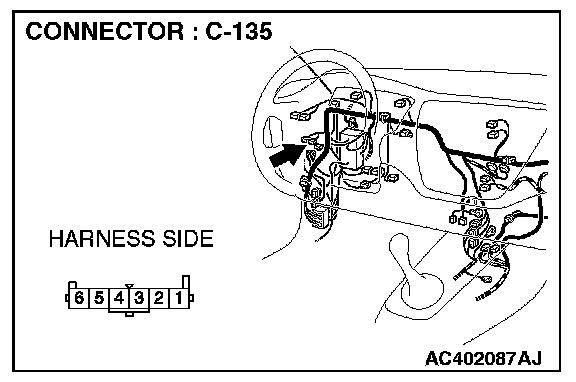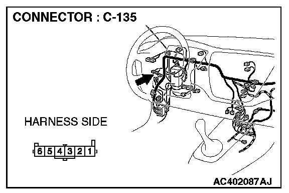STEP 6. Check the wiring harness between fog light switch connector C-135 (terminal 1) and ETACS-ECU connector C-228 (terminal 54).