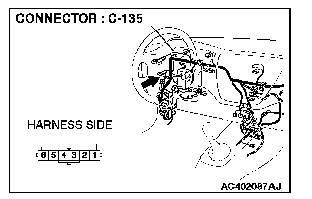 STEP 1. Check fog light switch connector C-135 for loose, corroded or damaged terminals, or terminals pushed back in the connector.