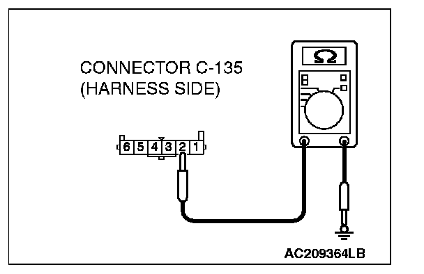 1. Disconnect fog light switch connector C-135 and measure the resistance available at the wiring harness side of the connector.