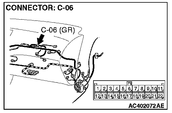 NOTE: Also check joint connector C-06 for loose, corroded, or damaged terminals, or terminals pushed back in the connector. If joint connector C-06 is damaged, repair or replace the damaged components) as described in Harness Connector Inspection.