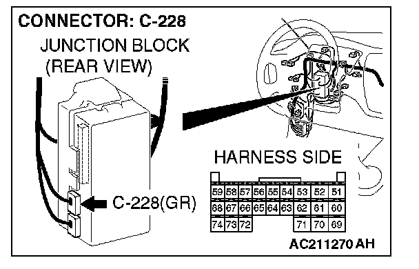 STEP 5. Check ETACS-ECU connector C-228 for loose, corroded or damaged terminals, or terminals pushed back in the connector.