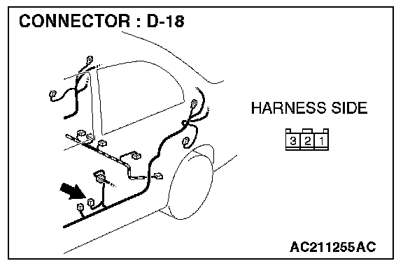 STEP 2. Check door switch (front: LH) connector D-18 for loose, corroded or damaged terminals, or terminals pushed back in the connector.
