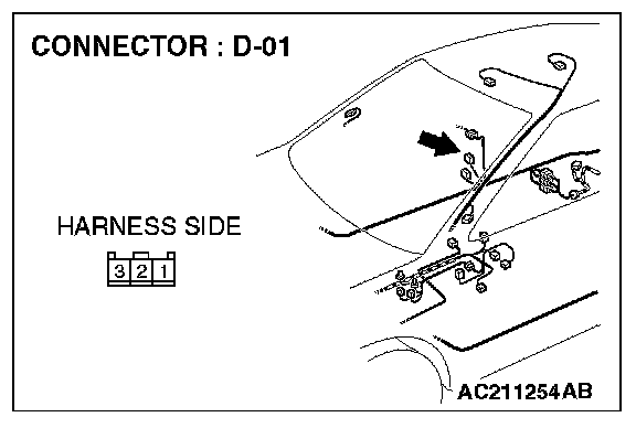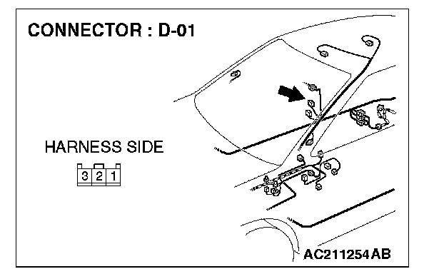 STEP 11. Check the wiring harness between door switch (front: RH) connector D-01 (terminal 3) and ETACS-ECU connector C-228 (terminal 65).