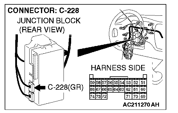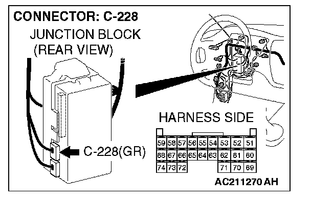STEP 10. Check ETACS-ECU connector C-228 for loose, corroded or damaged terminals, or terminals pushed back in the connector.