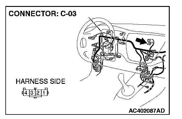 STEP 4. Check the wiring harness between hazard warning light switch connector C-03 (terminal 2) and ground.