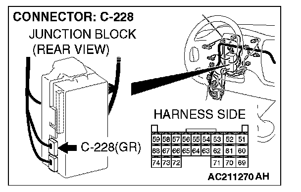 STEP 5. Check ETACS-ECU connector C-228 for loose, corroded or damaged terminals, or terminals pushed back in the connector.