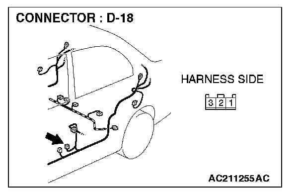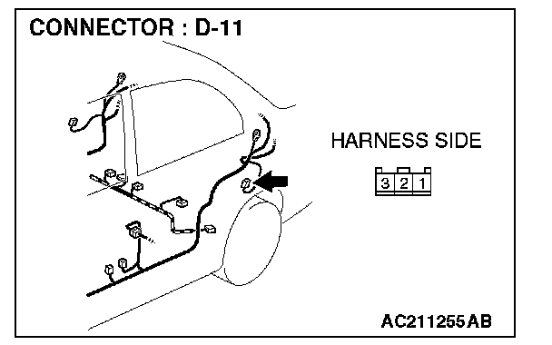 STEP 2. Check door switch (rear: LH) connector D-11 for loose, corroded or damaged terminals, or terminals pushed back in the connector.
