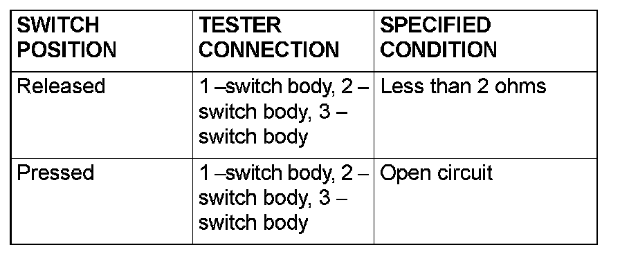 Remove the door switch (rear: LH). Then check continuity between the switch terminals and switch body.