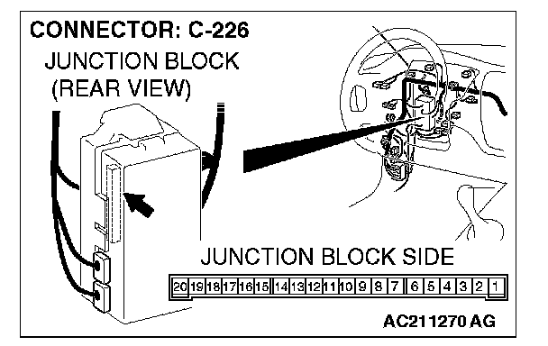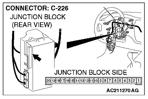 STEP 5. Check and ETACS-ECU connector C-226 for loose, corroded or damaged terminals, or terminals pushed back in the connector.