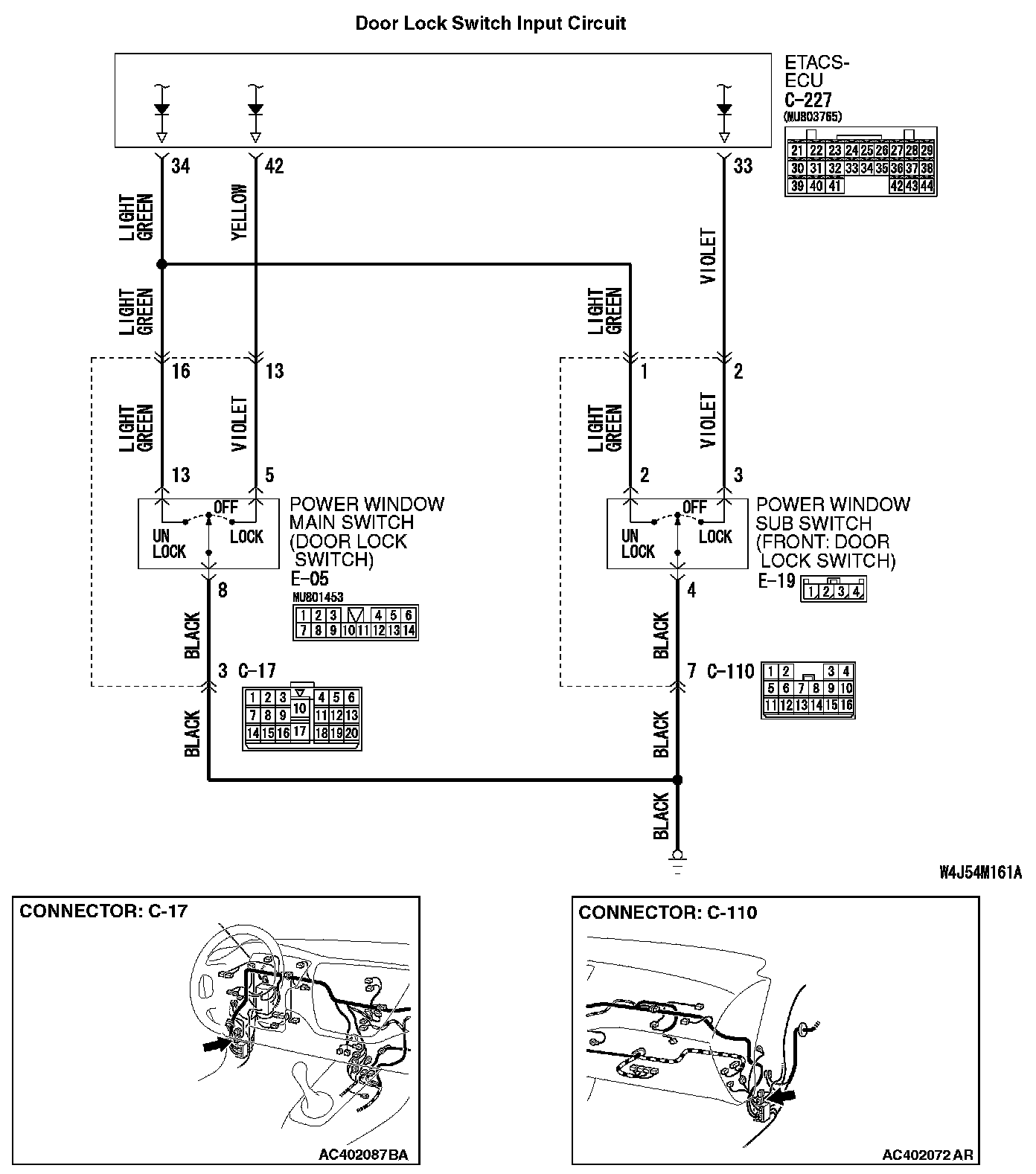 The ETACS-ECU does not receive any signal from the door lock switch (incorporated in power window main switch and power window sub switch).Door Lock Switch Input Circuit Part 1: