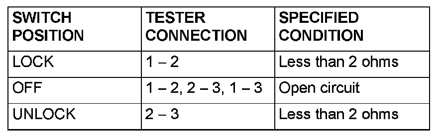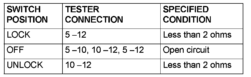NO: The wiring harness may be damaged or the connector(s) may have loose, corroded or damaged terminals, or terminals pushed back in the connector. Repair the wiring harness as necessary. If the central door locking system works normally, input signal from the door lock switch should be normal.