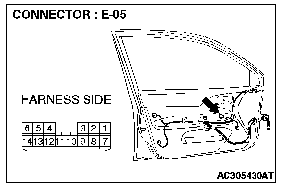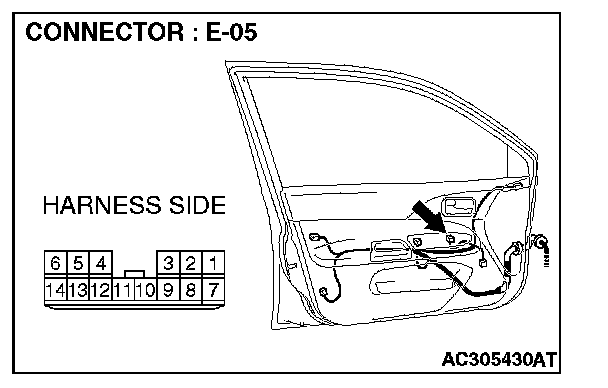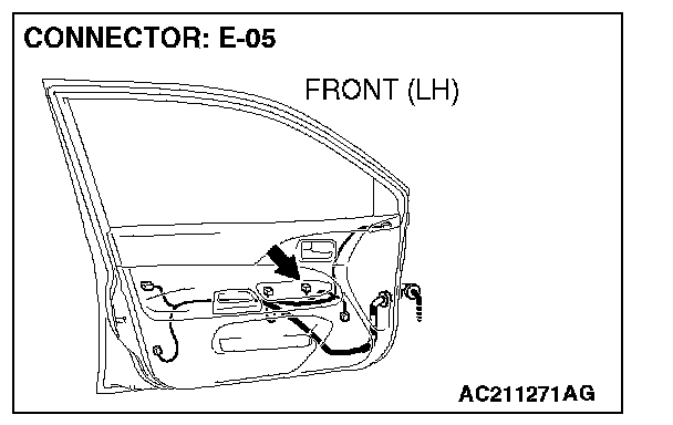 STEP 2. Check power window main switch connector E-05 for loose, corroded or damaged terminals, or terminals pushed back in the connector.