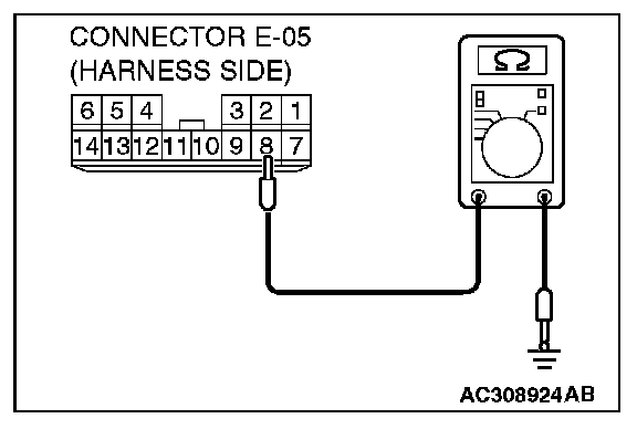 STEP 5. Check the wiring harness between power window main switch E-05 (terminal 8) and ground.