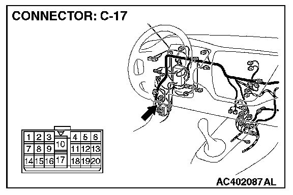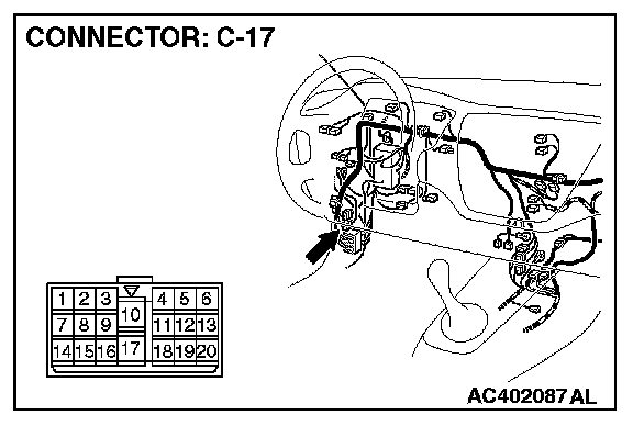 NOTE: Also check intermediate connector C-17 for loose, corroded, or damaged terminals, or terminals pushed back in the connector. If intermediate connectors C-17 is damaged, repair or replace the damaged component(s) as described in Harness Connector Inspection.