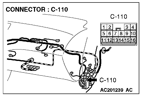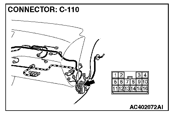 NOTE: Also check intermediate connector C-110 for loose, corroded, or damaged terminals, or terminals pushed back in the connector. If intermediate connectors C-110 is damaged, Repair or replace the damaged component(s) as described in Harness Connector Inspection.