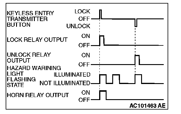 NOTE: Enabling/disabling the hazard warning light flashing, the horn sounding in accordance with the keyless entry transmitter switch operation.