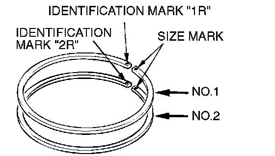 1. To prevent wrong installation, check the identification mark of each piston ring. The identification mark is stamped near the ring gap: