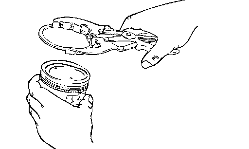 2. To install each coil expander, first fit one end of the oil ring into the piston groove, then press the remaining portion progressively into position by finger as shown in the drawing.