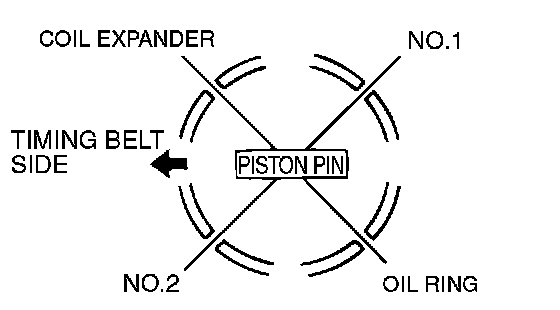 2. Arrange the piston ring and oil ring gaps (oil ring and coil expander) as shown in the illustration.