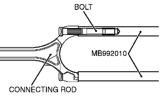 4. Not to damage the crank pin, attach a special tool MB992010, to the connecting rod bolt.