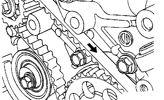 Loosen the tensioner "B" bolt, and then remove the timing belt "B."