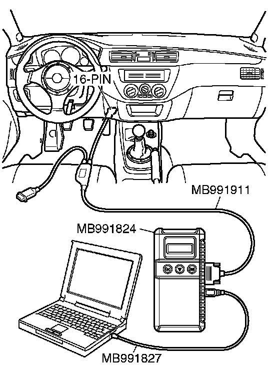 12. Use the scan tool MB991958 to erase the diagnostic trouble codes.