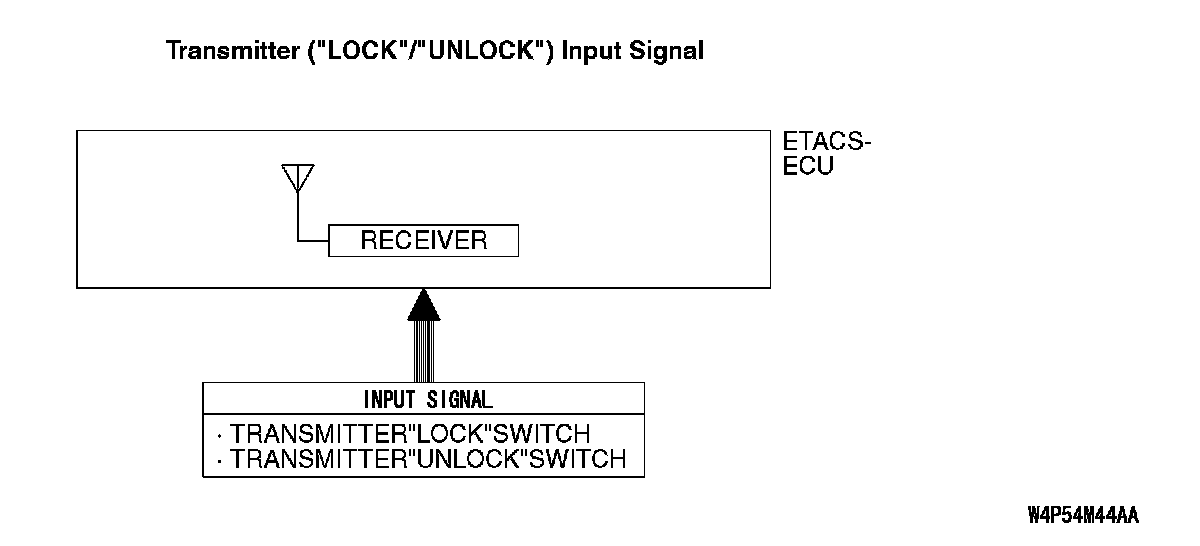 A receiver is incorporated in the ETACS-ECU. This receiver receives a lock or unlock signal from the transmitter.