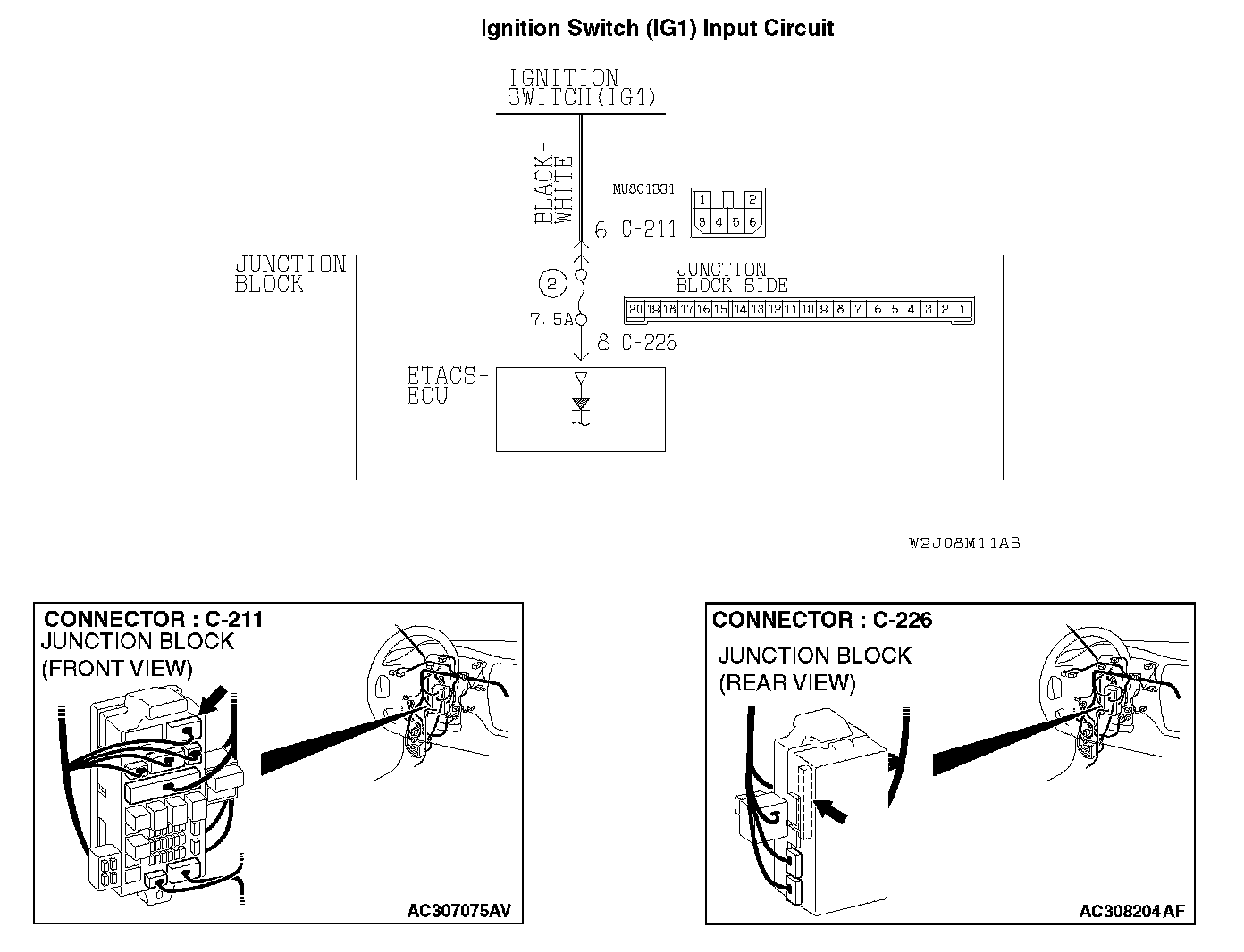 1. Disconnect ETACS-ECU connector C-226 and measure the voltage available at the junction block side of the connector.