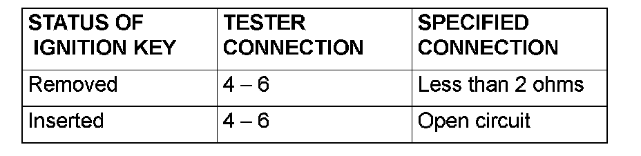 KEY REMINDER SWITCH AND IGNITION KEY RING ANTENNA CONTINUITY CHECK1. Ignition key reminder switch continuity check.