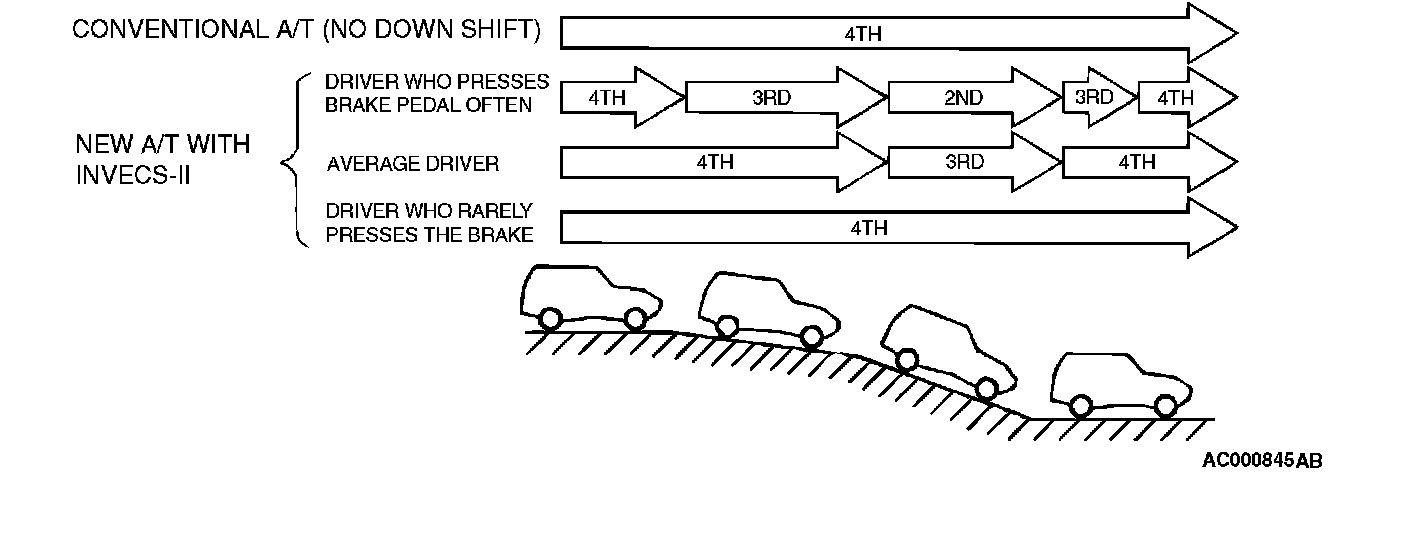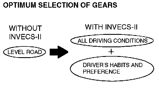 ^ INVECS-II features "Optimum Shift Control," which provides shift timing the average driver perceives to be the optimum timing under any road conditions. "Adaptive Shift Control" adjusts shift timing to match the driving habits and preferences of individual drivers.