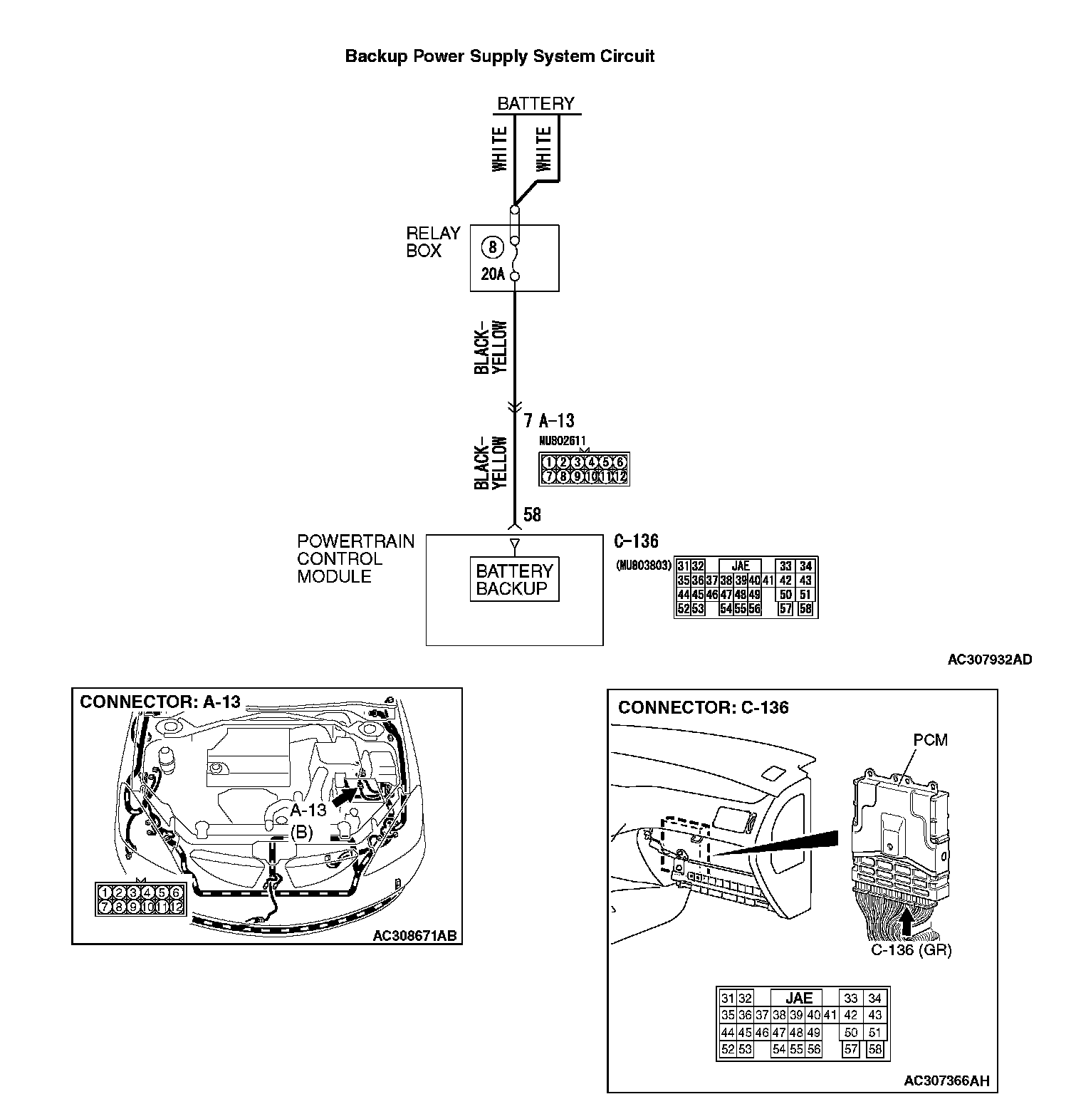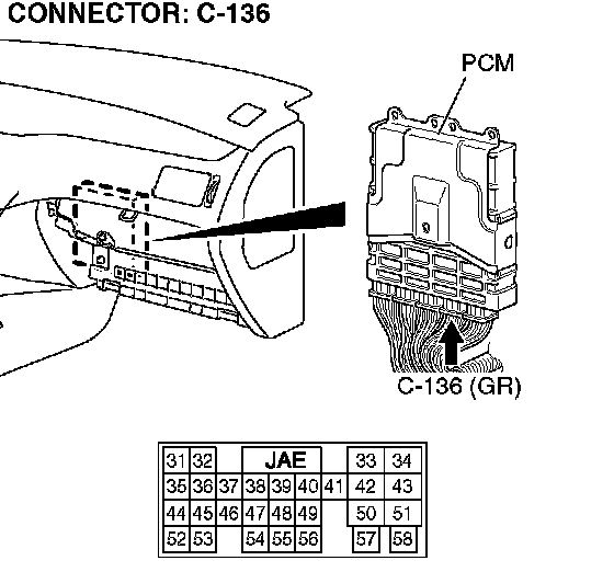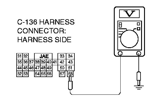 STEP 4. Check the harness for open circuit between PCM connector C-136 terminal 58 and battery.