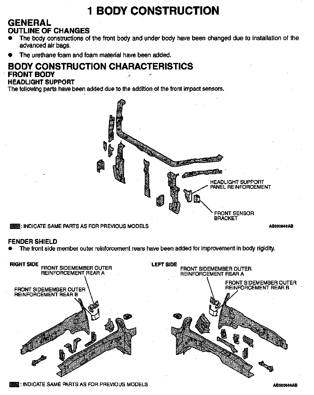This bulletin contains new body repair information for the 2006 Lancer. This new information applies to body construction characteristics, foam materials, corrosion protection, and body color.