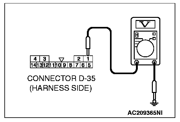1. Disconnect sunroof motor assembly connector D-35 and measure the voltage available at the wiring harness side of the connector.