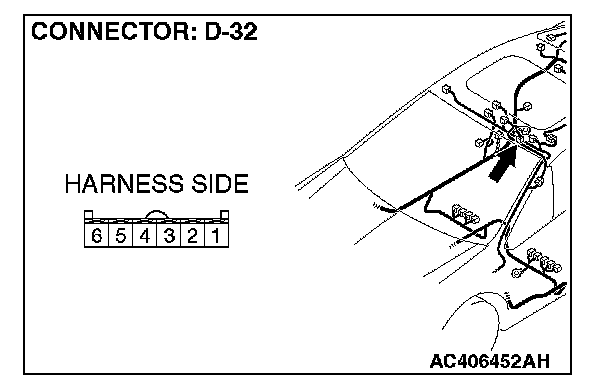STEP 8. Check the sunroof switch connector D-32 for loose, corroded or damaged terminals, or terminals pushed back in the connector.
