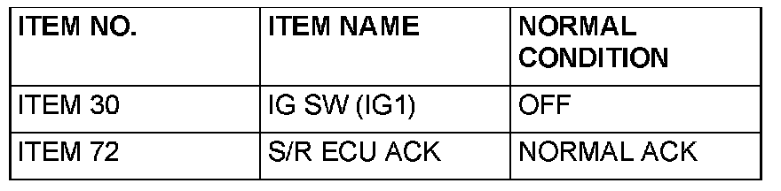 Normal condition is not displayed for the "S/R ECU ACK": Replace the sunroof motor assembly. Check that the sunroof timer function works normally.
