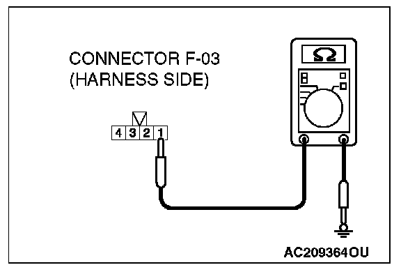 STEP 6. Check the wiring harness between rear wiper motor connector F-03 (terminal 1) and ground.