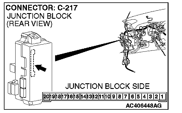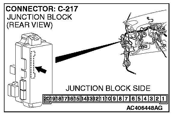 STEP 7. Check ETACS-ECU connector C-217 for loose, corroded or damaged terminals, or terminals pushed back in the connector.
