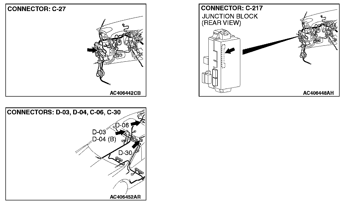 NOTE: Also check intermediate connector C-27 for loose, corroded, or damaged terminals, or terminals pushed back in the connector. If intermediate connector C-27 is damaged, repair or replace the damaged component(s) as described in Harness Connector Inspection.